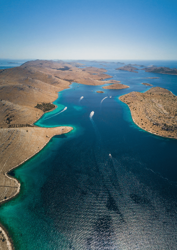 Die Kornaten werden nicht umsonst als das „nautische Paradies“ Kroatiens bezeichnet. Sie faszinieren mit ihrer kargen Landschaft, den steil ins Meer abfallenden Klippen und dem tiefblauen, kristallklaren Wasser. Die Inseln sind weitgehend unbewohnt und bieten eine einzigartige Mischung aus rauer Ursprünglichkeit und absoluter Ruhe.
